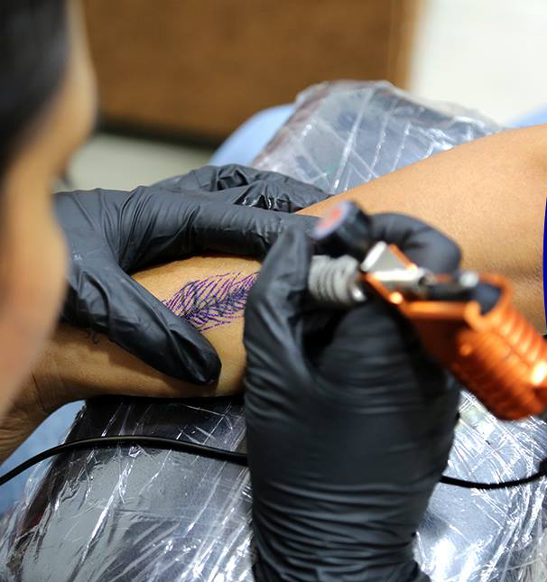 We are not concerned with the designs of the tattoo but also its quality to ensure this we keep best of equipments which can offer world class tattooing art in our hygiene standards no one can beat us as they match with the international standard. He started the process with the real packed needles once. We are done needless are either disposed or are given to you besides that we also take care of cleanliness things like ink caps gloves razors etc...... Making a permanent tattoo is like performing minor surgery, so most of the staff we use like tattoo needles, ink tips, ointments, gloves are one time use far non disposable stuff like tattoo chair, furnish etc...... We use disinfectants and sterilization equipments and meet international medical standard.